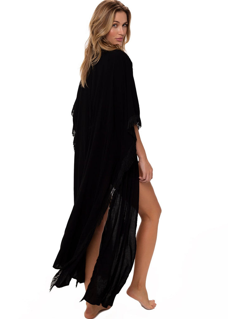 Shop our stylish black maxi cover-up, the perfect lightweight and comfortable addition to your swimwear collection. Featuring a plunging V-neck and tassel details, this versatile piece easily transitions from beach to dinner. Explore now!